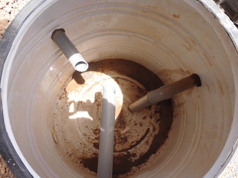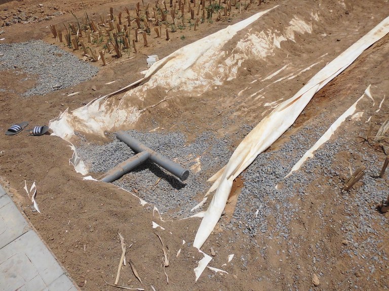 Wenige Wochen nach Inbetriebnahme wird ein stark reduzierter Durchfluss festgestellt. Zur Ermittlung der Ursache (Verstopfung durch Feinsandanteile) wird ein Becken wieder ausgehoben.
